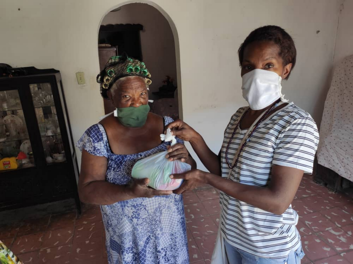 «Um der Quarantäne-Langeweile entgegenzuwirken, verteilen wir zusammen mit den Notpaketen auch Bücher und wir nutzen die Hausbesuche, um mit den Menschen über ihre Befindlichkeit zu sprechen. Es ist wichtig, dass sie sich nicht alleine gelassen fühlen,» so Yoelkis zum psychosozialen Ansatz von AfroAtenAs. Besonders berührt war der Koordinator vom Einsatz einer Gruppe von Transpersonen, die Stoffmasken nähten, um sie in der Gemeinde zu verteilen: »Dies zeigte uns, dass es gelingt, verschiedene Bevölkerungs-gruppen zusammenzubringen. Gemeinschaft wird so gelebte Realität.»
